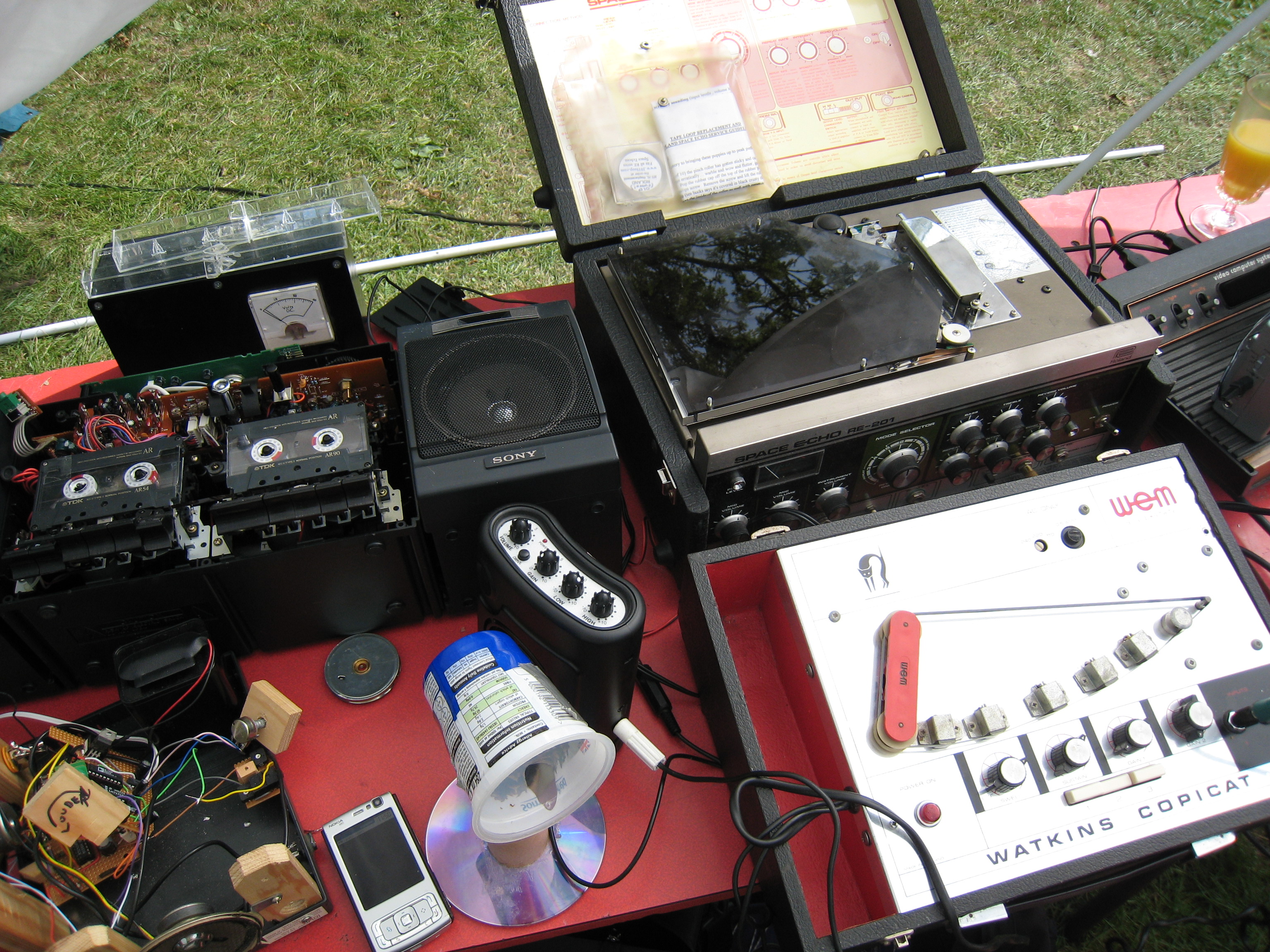 The hack went down a storm at BurningDork. One funny thing was that two other people bought classic tape delay systems with them. Here is the tape hack alongside a Watkins Copyicat and a Roland Space Echo. Delay